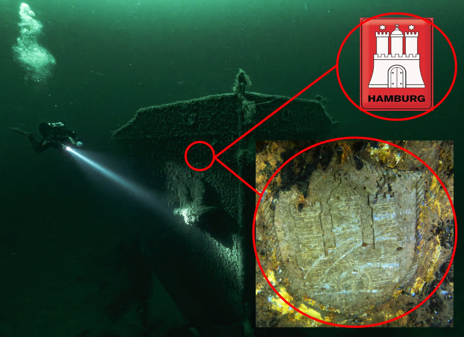 Podczas wyprawy badawczej 30.05.2025r. historyk Łukasz Orlicki po analizie zdjęć Terry, zasugerował inspekcje dziobu wraku w celu odnalezienia pewnego elementu , który zauważył na starych fotografiach tankowca. Podczas nurkowania nurek Kamil Stankiewicz oczyścił wskazany fragment dziobu z omułków, odsłaniając herb Hamburga na spawany na kadłub jednostki. To znalezisko zostało opisane w Magazynie Odkrywca.