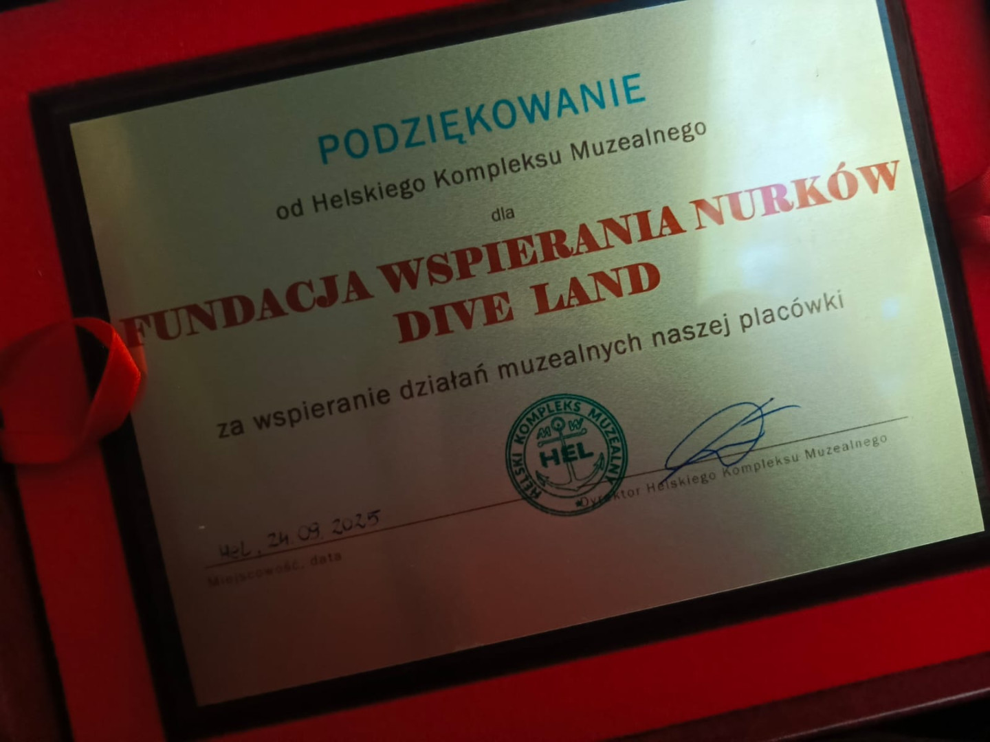 Odsłonięcie obrazu Unforseen / Nieprzewidziany autorstwa Marka Sarby w Muzeum Helu było ukoronowaniem wystawy 15-lecia zatopienia K-18 Bryza. Blisko rok po otwarciu wystawy upamiętniającej służbę jednostki pomocniczej marynarki wojennej K-18 Bryza i je dalszych podwodnych losów. Na muzealnej ścianie zamiast repliki obrazu przedstawiającego wchodzący do portu Marynarki Wojennej w Helu kuter K-18 Bryza pojawiło się oryginalne płótno autorstwa Pana Marka Sarby. Autor przekazał do Muzeum Helu ten obraz po rozmowach ze swoim przyjacielem Andrzejem Patro, który wspierał swoimi fotografiami tworzenie wystawy. Obraz przebył długą drogę za Stanów Zjednoczonych, do których artysta wyemigrował w latach osiemdziesiątych, aby finalne uświetnić wystawę 15-lecia zatopienia K-18. W tym procesie przekazania i odsłonięcia obrazu Fundacja Dive Land brała czynny udział koordynując transport i pomagając w załatwieniu formalności związanych z procedurami sprowadzenia obrazu do Polski.